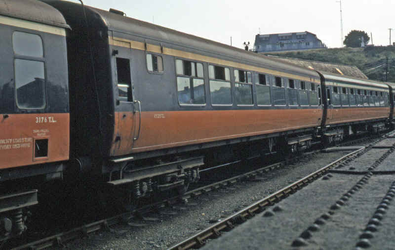 Former BR Mk1 generator coach no.3174. The TL means that the coach has a through line electric train heating cable.