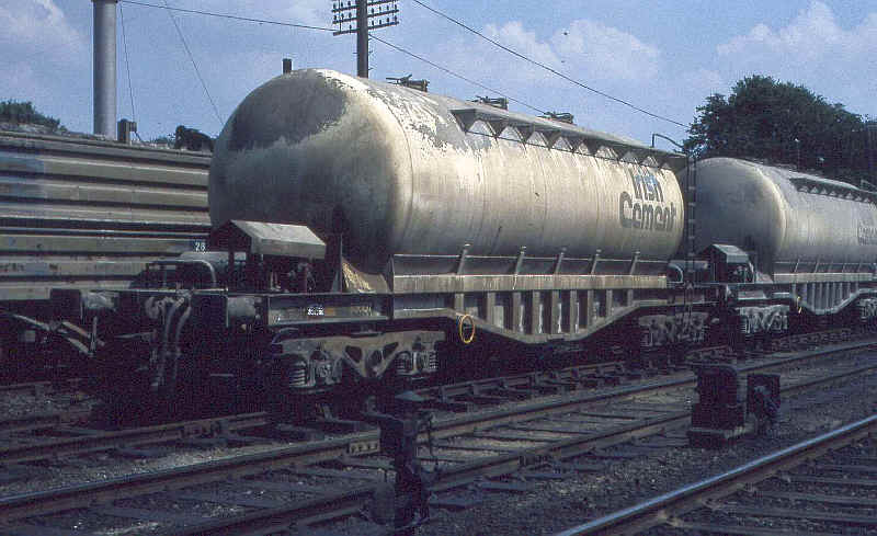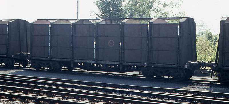 Another view of the bagged cement wagons with the counter-balanced body sides.