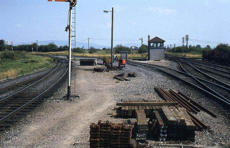 The north end junction with the Limerick line to the left. The flat crossing between the direct Limerick to Waterford and the main Dublin to Cork line can be seen just to the right of the signal box and the semaphore signal controlling this is to the left of the box.